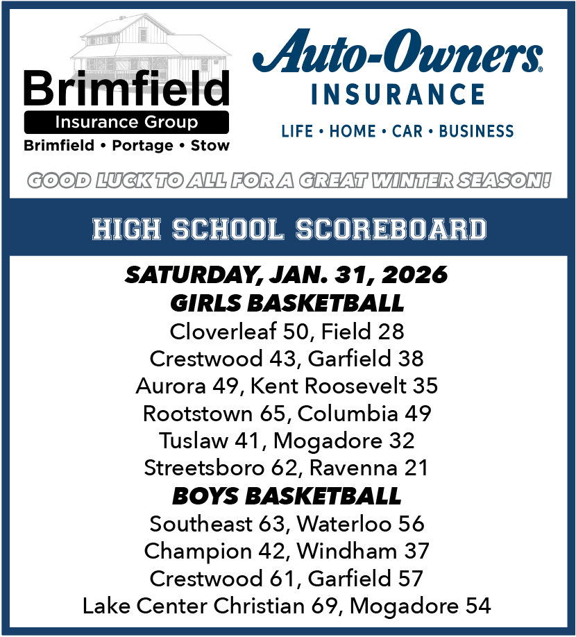 HIGH SCHOOL SCOREBOARD MONDAY, JAN. 5, 2026 GIRLS BASKETBALL ROOTSTOWN 68, MOGADORE 55 (At Rootstown) MOGADORE (55) — Kasey Bolyard 6 10-14 22; Hayli Clester 3 0-0 6; McKenna Clark 0 2-2 2; Jessica Holler 3 2-4 8; Rylee Clark 4 0-0 10; Ava Murphy 1 0-0 2; Tali Bartholomew 2 1-2 5. […]