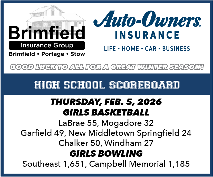 HIGH SCHOOL SCOREBOARD THURSDAY, FEB. 5, 2026 GIRLS BASKETBALL LABRAE 55, MOGADORE 32 (At LaBrae) MOGADORE (32) — Kasey Bolyard 3 0-0 6, Hayli Clester 1 0-0 2, Jessica Holler 4 2-2 10, Eden Cameron 1 0-0 2, Rylee Clark 2 0-0 6, Ava Murphy 2 0-0 6. Totals 13 2-2 32. LABRAE […]